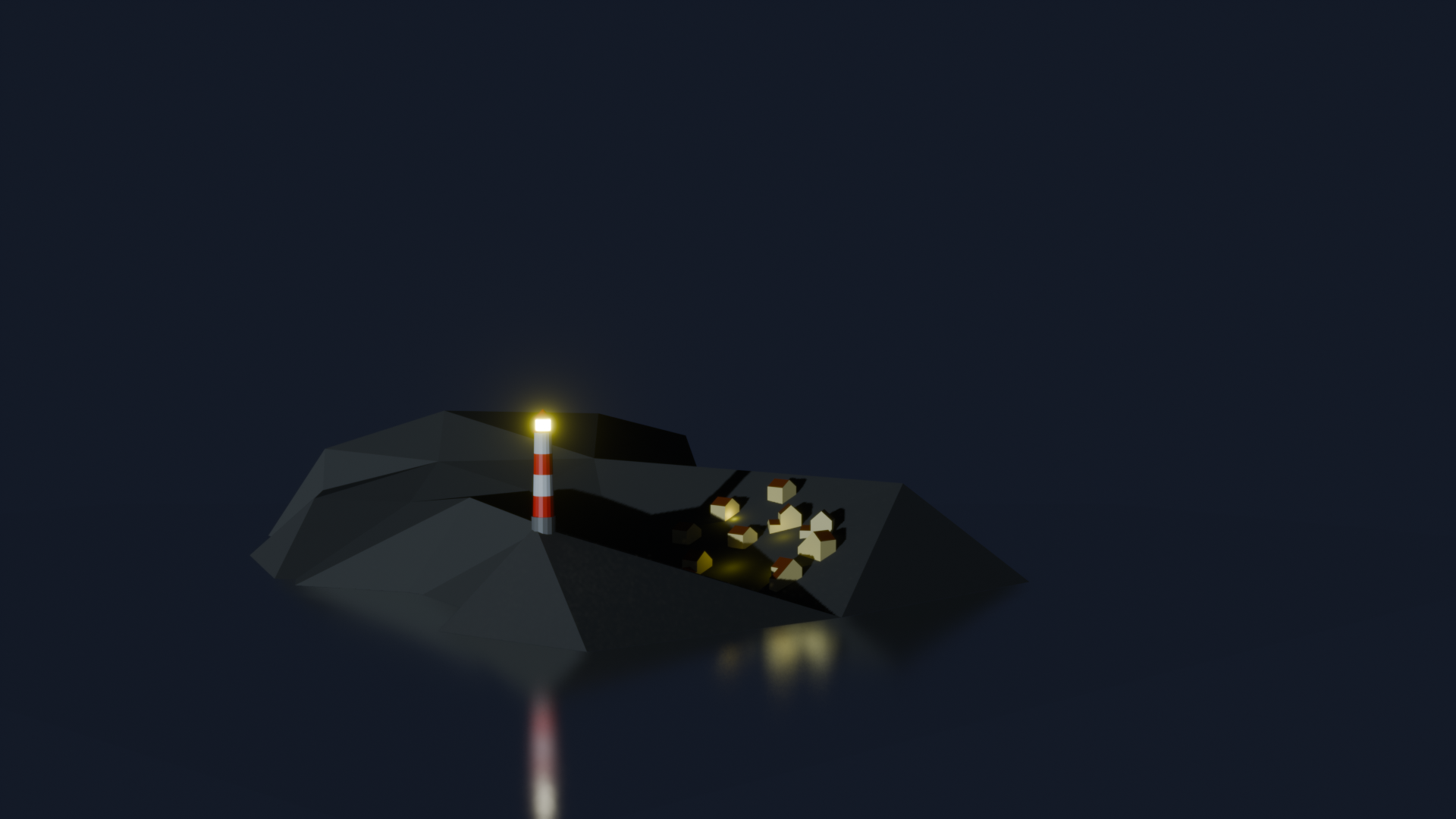 Next, I completed this masterpiece: an island at night with a lighthouse. The lack of light in the picture is definitely helpful!
